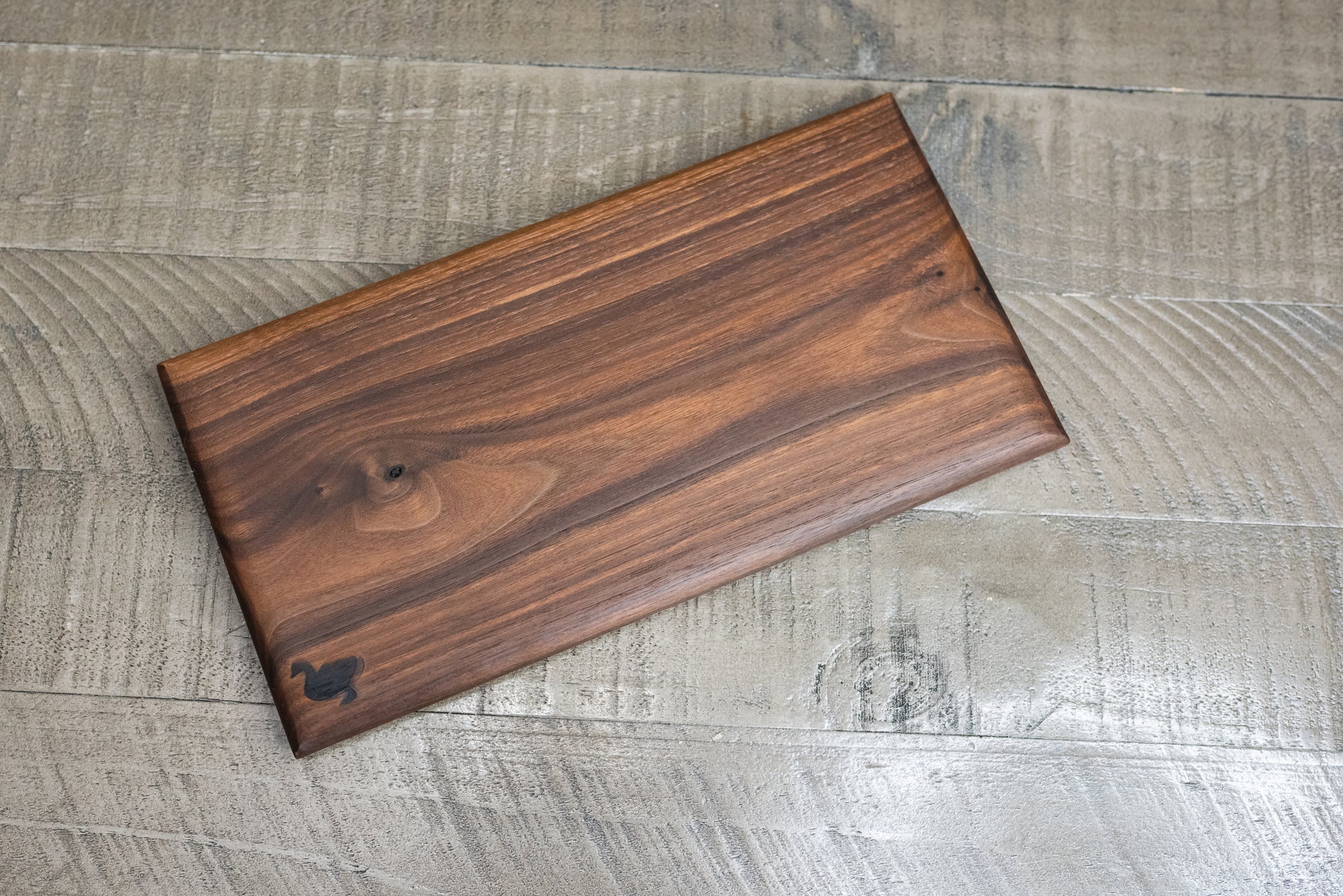 Bring timeless elegance to your kitchen with this handcrafted black walnut charcuterie board. Available in your choice of ¾” or 1” profile thickness and a length of 12 or 18," this board is perfect for everyday serving, intimate gatherings, or as a premium gift. Each board features smooth routed edges for a refined look, finished with food-safe oil, and branded with my artisan mark for authenticity.